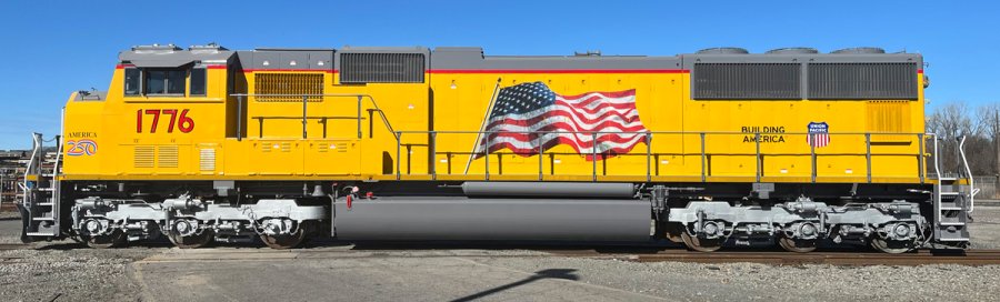 | UP just unveiled its America 250th anniversary locomotive UP1776. This is former UP4164 an EMD SD70M built on April 1st, 2000. This locomotive will be going with the Big Boy tour this summer. |