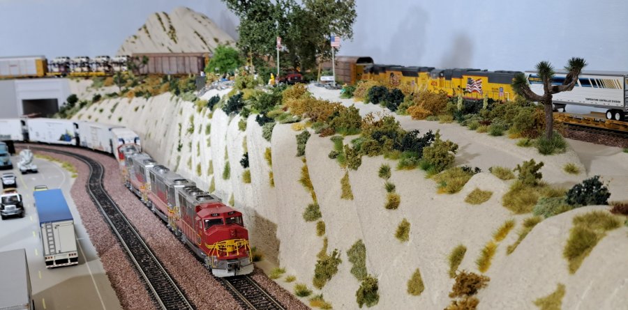 This is my final project for my layout. Hill 582, the ultimative railfan's observation point in Cajon Pass. |