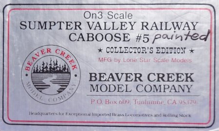 | Code AY-13: On3 Scale: Beaver Creek, Sumpter Valley Caboose # 5, C/P, figure, sFr. 750.- consignment |