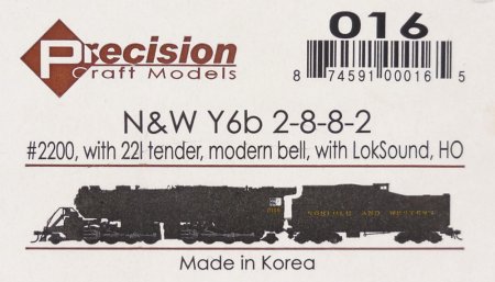 # 016, N&W, 2-8-8-2, Y6b, #2200, DCC & Sound &