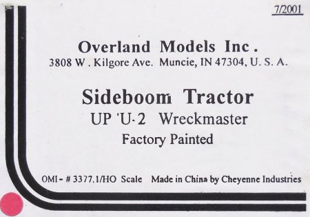| Code GS-120: HO Scale: OMI # 3377.1, UP, Sideboom Tractor U-2, F/P, 7/01-run, sFr. 225.- consignment |