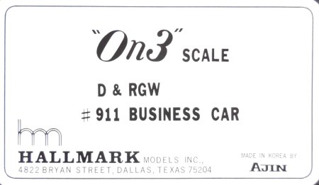 | Code AY-17: On3 Scale: Hallmark, D&RGW, Business Car #911, C/P, sFr. 440.- consignment |