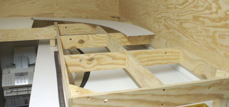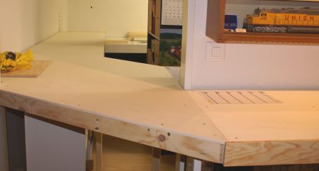 | 1/07/08 The covered staging yard is a unique construction because the top for the mainline is having a 1,5 % grade downhill. | |