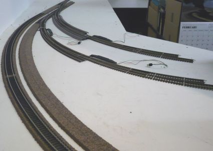 | 100 - 2/14/08 To enter the 6-track staging yard I am using curved switches from Rocoline. - 101 | |