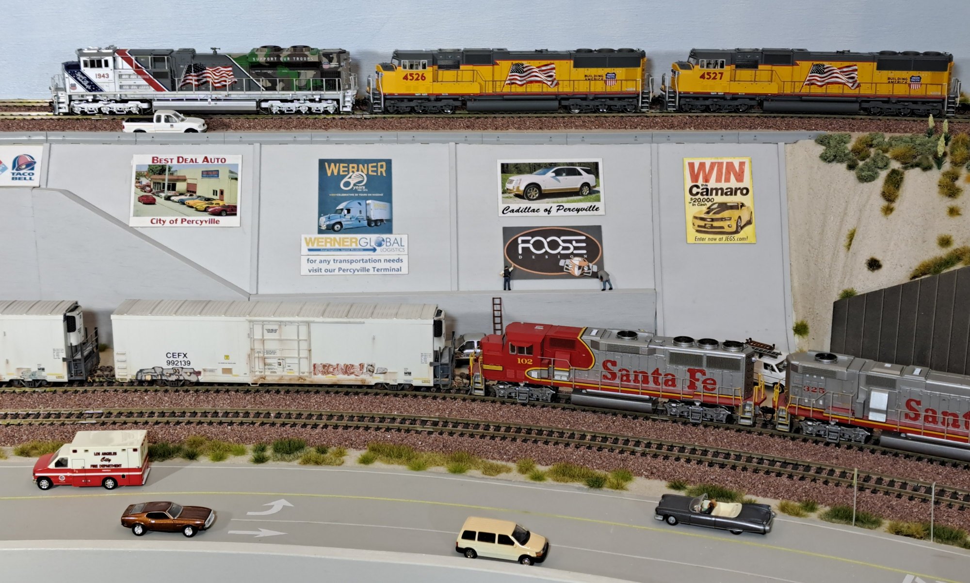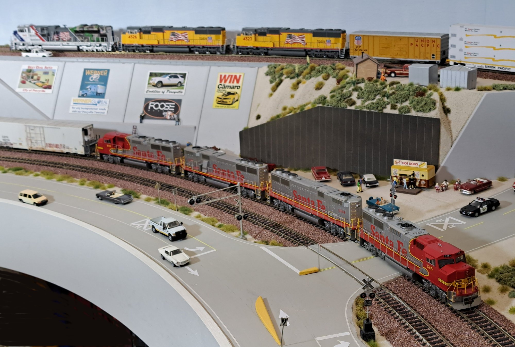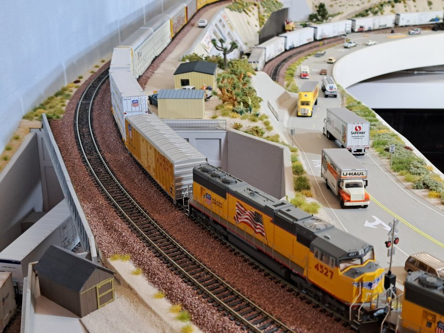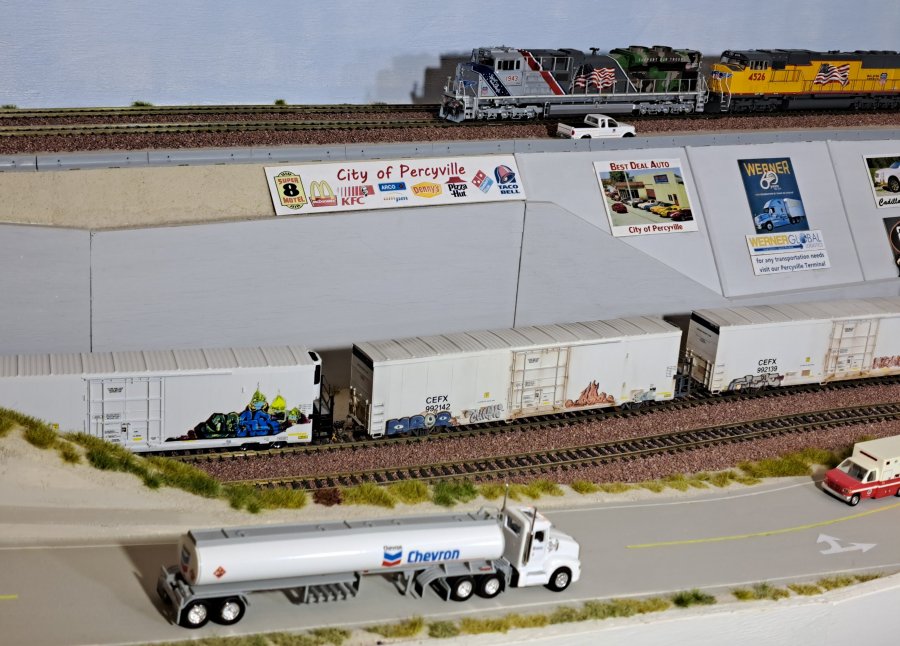 | In real, there are no more street level crossings but with 2 street overpasses (BNSF) and 1 street underpass (UP). WL-3667 |