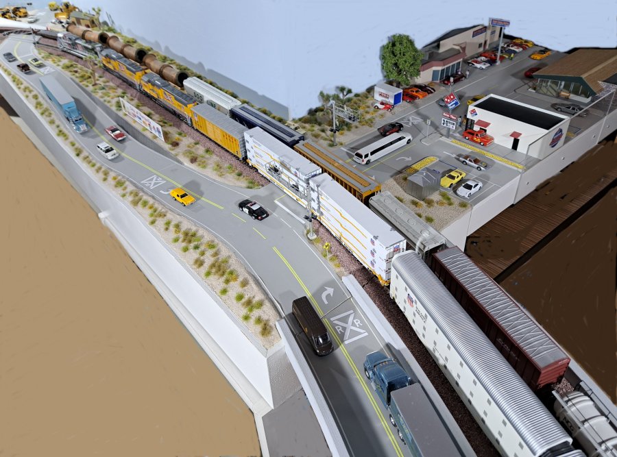 | In real, there are no more street level crossings but with 2 street overpasses (BNSF) and 1 street underpass (UP). WL-3667 |