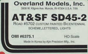 Overland Models # 6375.1, AT&SF, EMD SD45-2, Bicentennial, F/P, 7/99, FL-143, sFr. 900.-, (consignment) on sale 20 % sold out 5/09