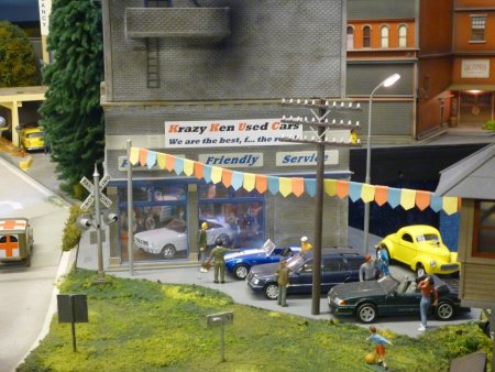| 157 - most buildings are scratch built | 136 - road crossing with 4 tracks |