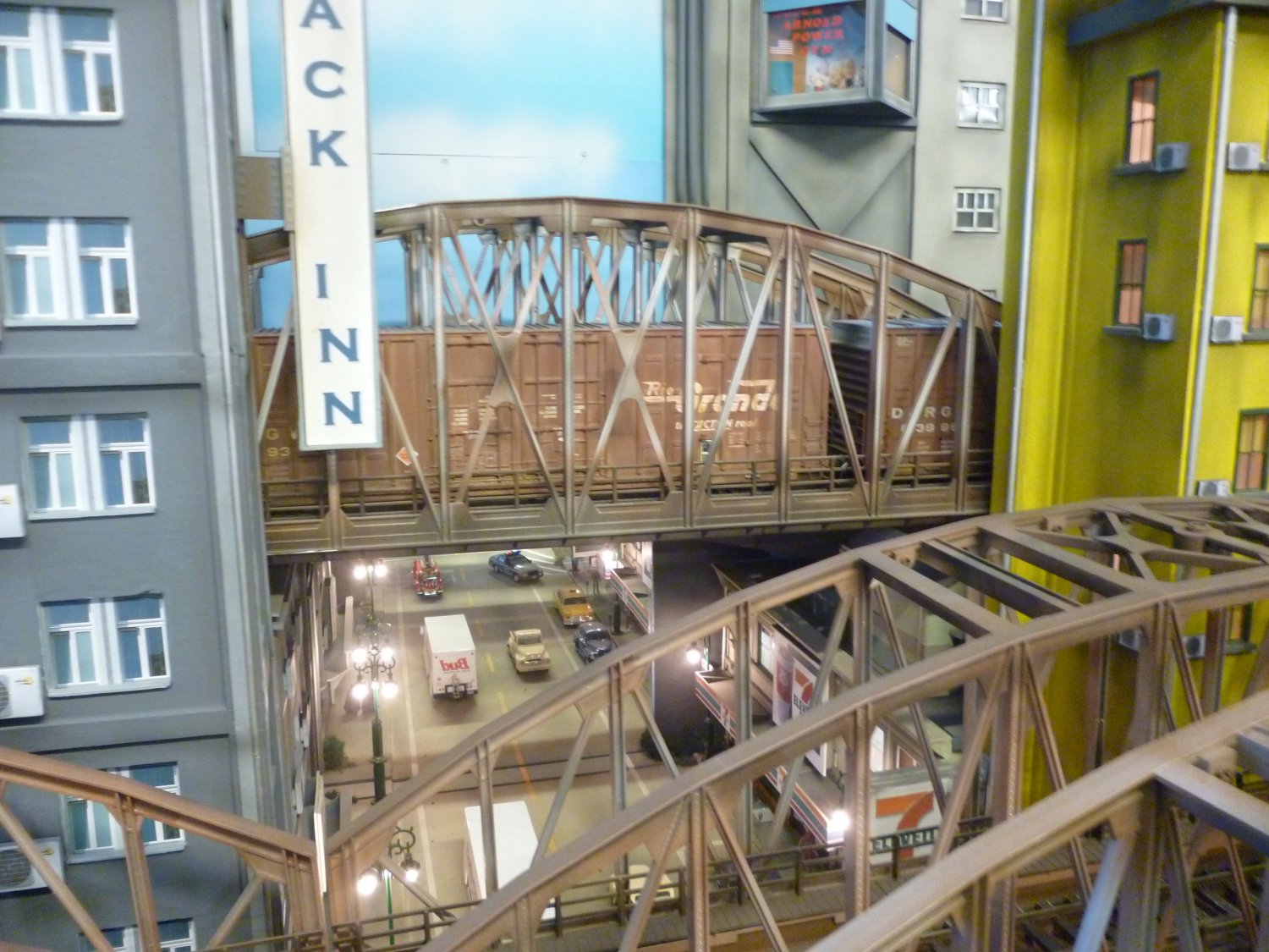 | Warum ein Stadtthema: Das Layout ist knapp 90 m2 gross.Das Thema ist eine Vorstadt einer grösseren City irgendwo in Nordamerika, ähnlich wie Chicago wo verschieden Bahngesellschaften zusammen kommen. No Name and the big five. Somit kann ich so ziemlich alles rollen lassen was mir gefällt. Das geht über UP, BNSF, CP, CN, L+N, Gulf Mobile and Ohio, CSX, Amtrak, Santa Fe, NS, SP, Rio Grande, Pennsy, etc... Der Name der Vorstadt ist Calvinsville, ein Fantasiename. Unter engeren Kollegen habe ich den Übernamen Calvin, vom Comic Calvin and Hobbes. Voller blühnender, oft absurder Fantasien und manchmal eine grosse Klappe, daher der Name. Ein weiterer Ort ist San Isidro, eine Dienststation mit Spurwechseln und dem anschliessenden Amtrak Depot. Dann gibt es noch den Haltepunkt Westwood, ähnlich wie Zürich Enge. Der Zug kommt direkt aus dem Tunnel und verschwindet wieder in einem solchen nach der Haltestelle. Spur 0 mit dem Thema US Bahnen und dann noch Landschaft finde ich eher schwierig. Man bräuchte eine Turnhalle um das Thema einigermassen glaubhaft zu gestalten. In einer Stadt dominieren die Hochhäuser. Die Züge verschwinden zwischen den Häusern und tauchen irgendwo wieder auf. Das macht es spannend und ist irgendwie einfacher umzusetzen. Die Ebene 0 liegt auf 1,2 m ab Boden. Der 8 gleisige Schattenbahnhof auf 0,8 m. Der höchste Punkt ist auf einer Brücke mit 1,5 m. |