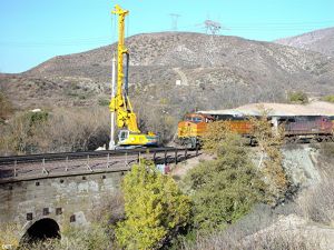 | 12/12/07 Bridge Supports at MP 63.4 (West of Cajon Station) - 301 | 12/12/07 Curved Bridge at MP 64.1X (East Cajon Station) - 302 | 12/03/07 Drilling for bridge supports new bridge at Blue Cut (it crosses the San Andreas Fault) - 303 |