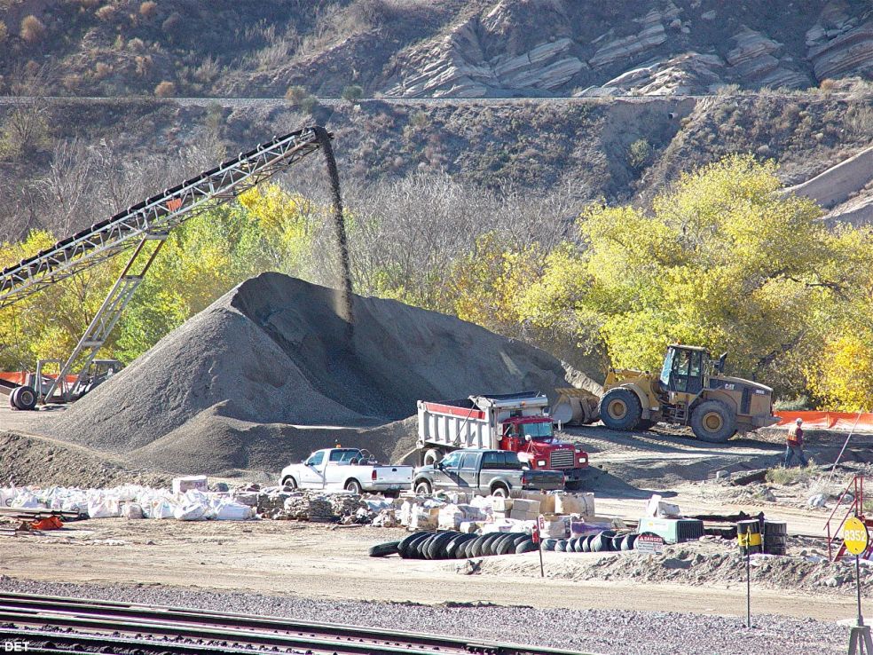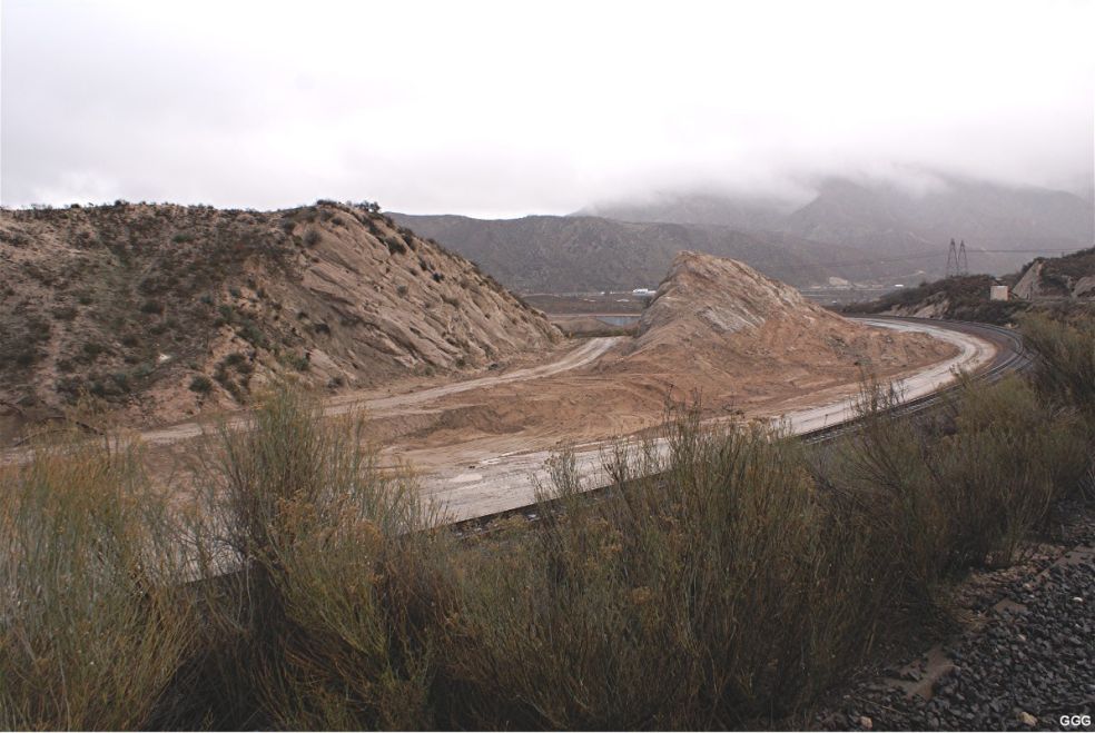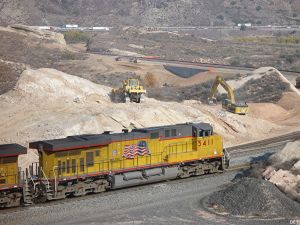 cars of ballast sitting in Victorville. Our recent rains have caused