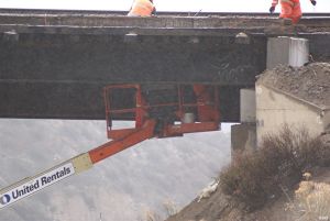 | 1/19/08 Est support Blue Cut Bridge MP 65.1 - 361 | 1/19/08 West support Blue Cut Bridge - 362 | 1/21/08 Cranes ready to lift first bridge section - 363 |