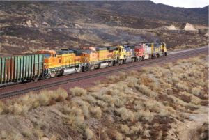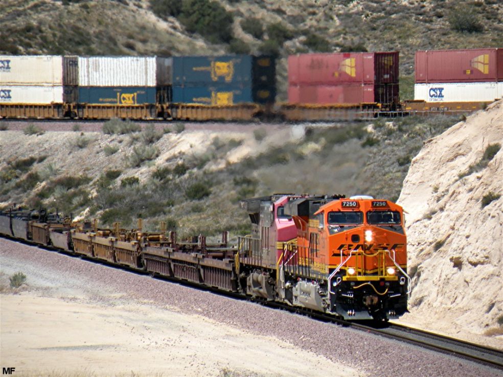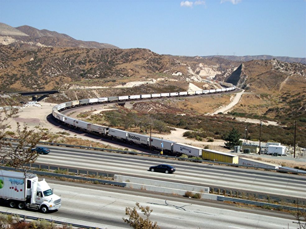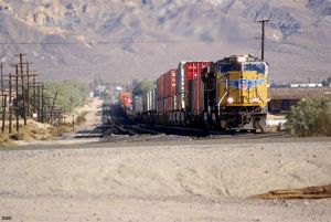 by location from East to West (not by date, number or railroad): Dagget, Barstow, Victorville/Narrows, Frost/Crossover, Hesperia, Lugo/Martinez, Summit, West Summit Island, Silverwood, Hill 582 Area, Alray/Tunnel Area, CP Walker/Davis Ranch Road, Mormon Rocks/Stein's Hill/Pine Lodge/HWY 138, Sullivan's Curve, Cajon Station/Junction, Graffiti Bridge, Swarthout Canyon Road Crossing, Blue Cut, Lower Canyon, San Bernardino, Colton Yard Bonus Photos: LA Harbors, Feather River Canyon Abbreviations found on this page: EB = East Bound, NB = North Bound, SB = South Bound, WB = West Bound, MP = Mile Post, DPU = Distributed Power Unit (Helpers) SWC = Swarthout Canyon Road Crossing, WSI = West Summit Island, JAC-BAR = San Jacinto to Barstow Train |