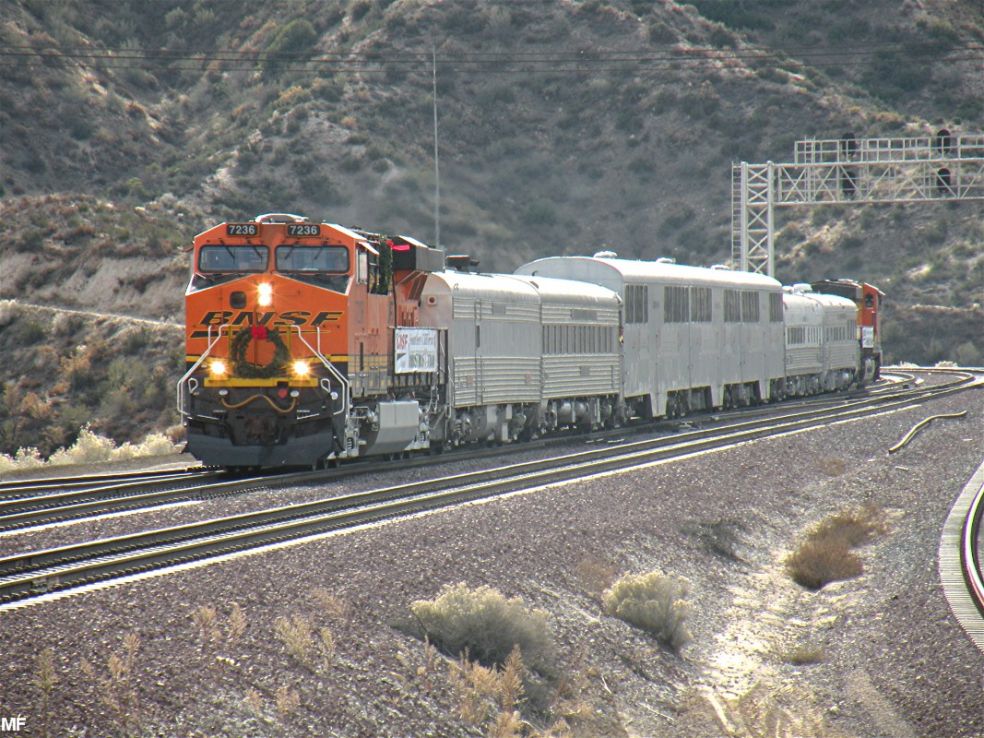 configuration. On Monday (12/21/09), the train ran a round trip from San Berdoo to Barstow - with a stop in Victorville. The power units were arraigned "elephant style". |