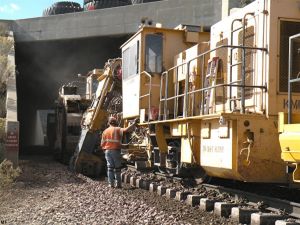 BNSF was building a 3rd Main Track thru Cajon Pass. It was built along the # 1 (north) track (2,2 % grade). The only 2 tunnels in Cajon have been daylighted. This one of a time project was completed on November 07, 2008. |