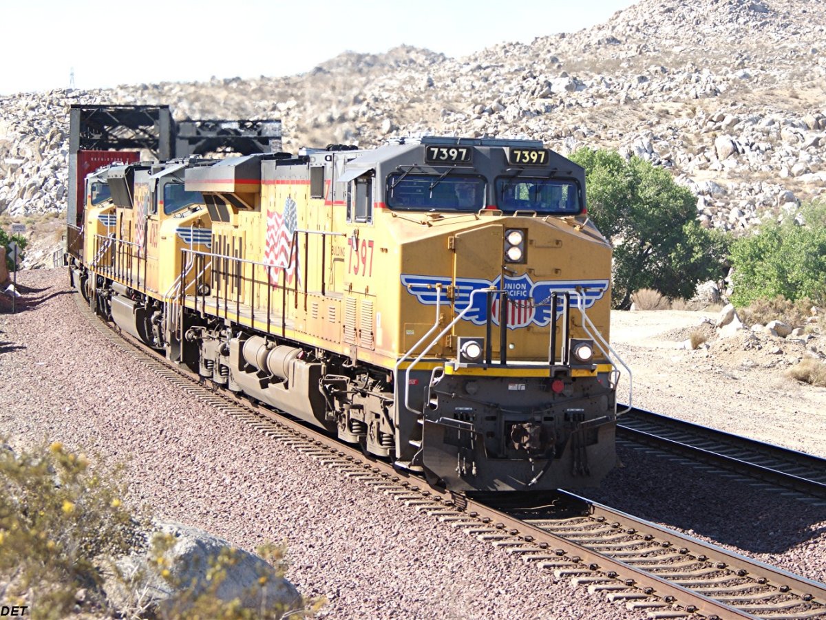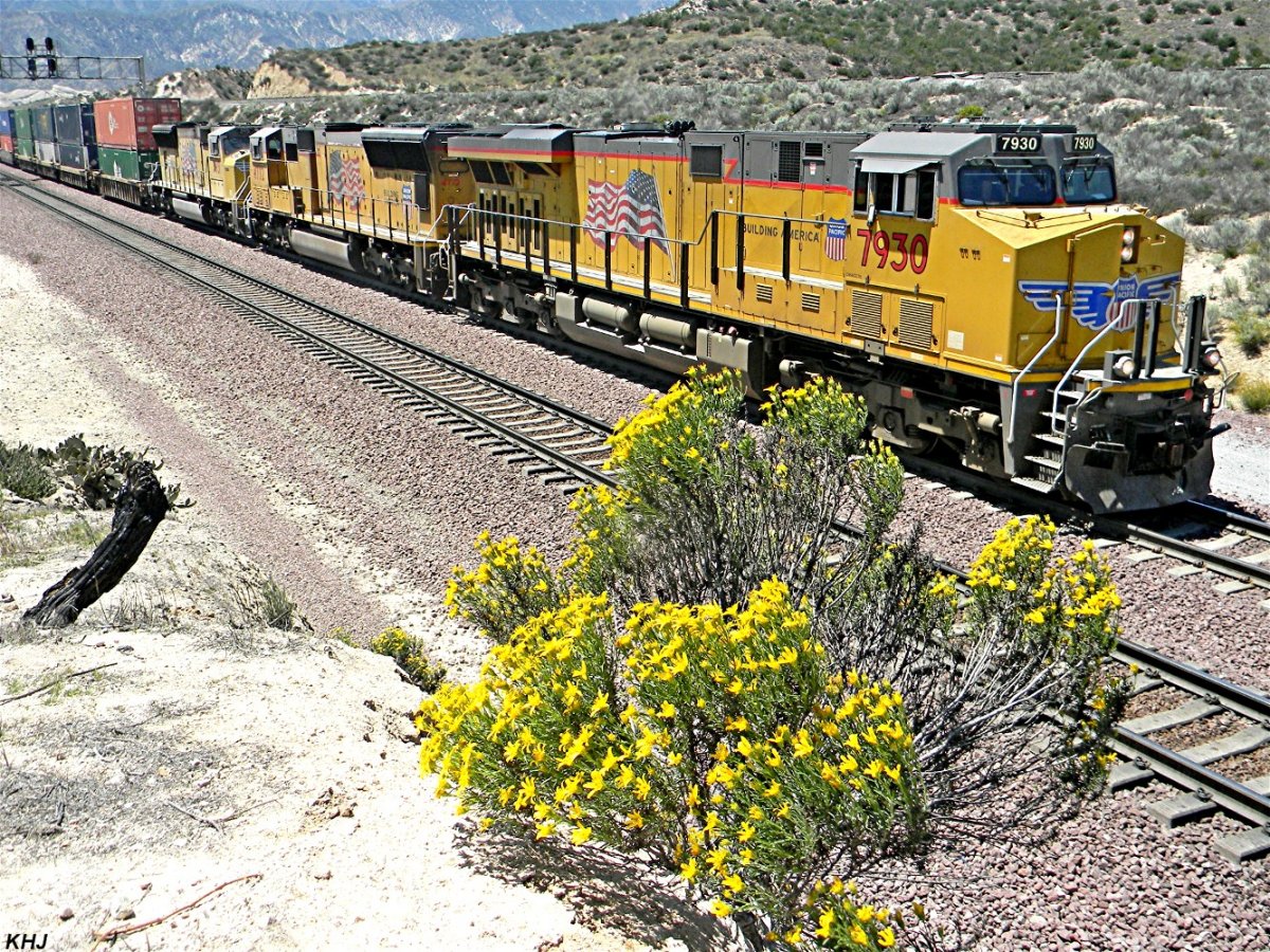| # 5246: UP 7397, WB, MP-34 (crossing Mojave River). # 5247: UP 6651 WB, Hill 582. # 5248: UP 7930 EB, Hill 582 | ||