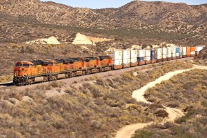 | # 5231: Looking north from Steins Hill. # 5232: BNSF 6522 EB @ Mormon Rocks. # 5233: BNSF 7099 EB through Walker. | ||