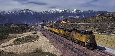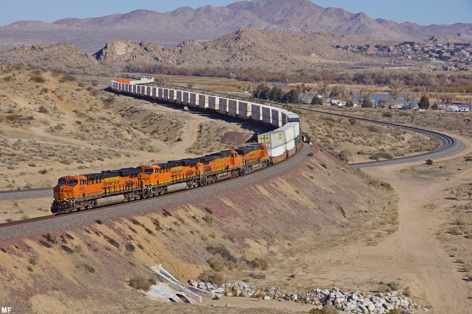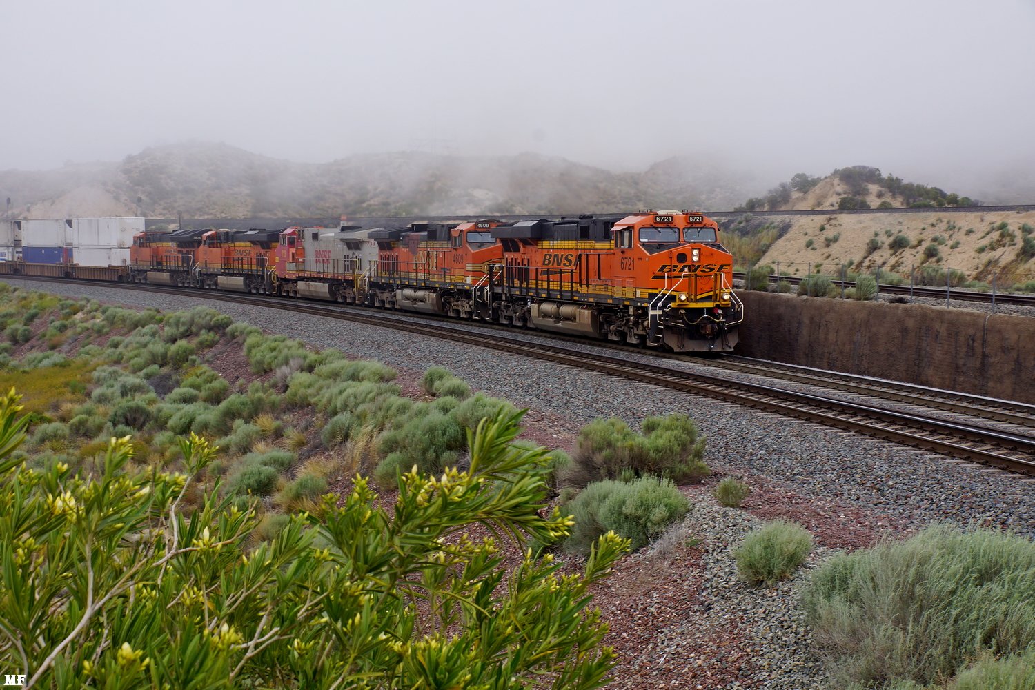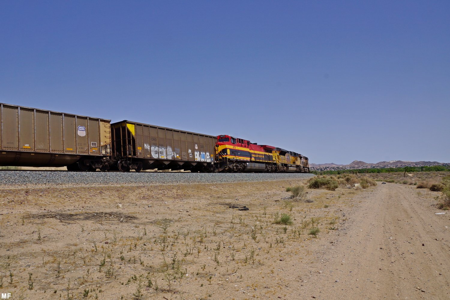 newest at the bottom - just scroll down! Some photos were taken at one of these locations below (we usually mention the place of the photo): Dagget, Barstow, Victorville/Narrows, Frost/Crossover, Hesperia, Lugo/Martinez, Summit, West Summit Island, Silverwood, Hill 582 Area, Alray/Tunnel Area, CP Walker/Davis Ranch Road, Mormon Rocks/Stein's Hill/Pine Lodge/HWY 138, Sullivan's Curve, Cajon Station/Junction, Graffiti Bridge, Swarthout Canyon Road Crossing, Blue Cut, Lower Canyon, San Bernardino, Colton Yard Bonos Photos - non Cajon Pass - are at the bottom of this page (just scroll down) Abbreviations found on this page: EB = East Bound, NB = North Bound, SB = South Bound, WB = West Bound, MT-1 = BNSF Main Track 1, MT-2 = BNSF Main Track 2, MT-3 = BNSF Main Track 3, UPT = UP Colton-Palmdale Cutoff Track, MP = Mile Post, DRR = Davis Ranch Road, DPU = Distributed Power Unit (Helpers), SC = Sullivan's Curve, SWC = Swarthout Canyon Road Crossing, WSI = West Summit Island, KCR = Kemper Campbell Ranch, JAC-BAR = San Jacinto to Barstow Train |