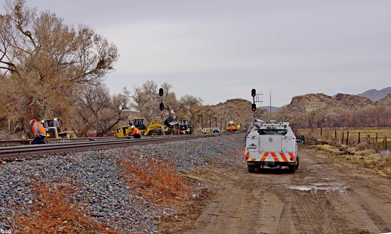 GT-257 BNSF 7004 approaches construction area at MP 39.4. |