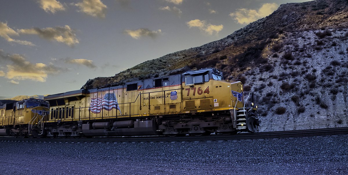 | Doc Jones Photography of Tehachapi Pass - Farewell Union Pacific Big Flags |