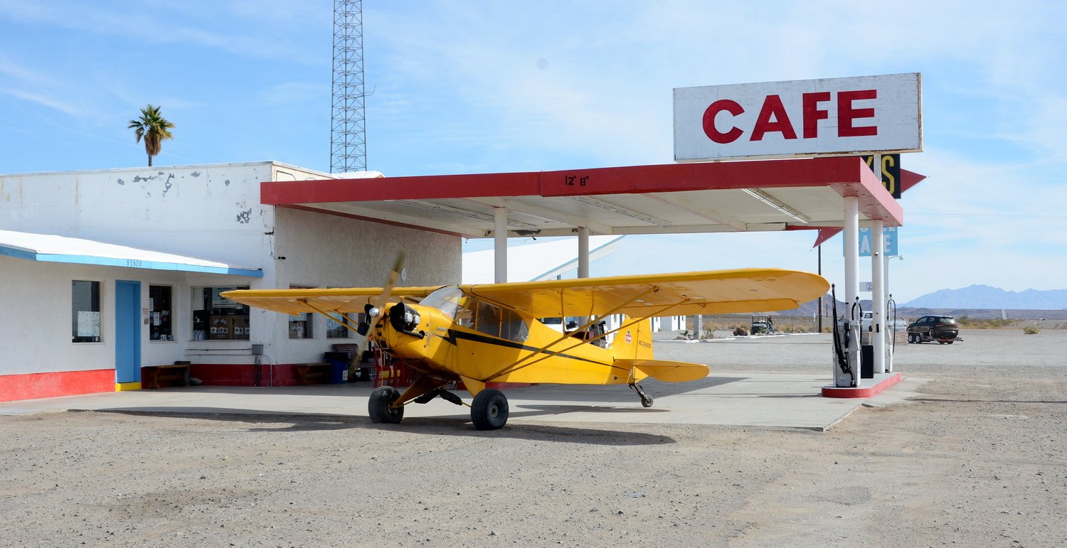 While photographing Amboy, this 1938 Piper J-3 Cub landed, taxied back and shutdown at the automobile gasoline pumps. The pilot climbed out, pushed the Cub closer to the pumps and filled the tank(s) with 87 octane auto gasoline. He then took-off & left town - leaving our photographers wondering "what the 'HELL' just happened?" Aircraft Data N21486, 1938 Piper J3F-60 C/N 2342 |