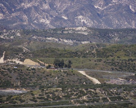 (Hill 582) The San Gabriel Mountains (still with snow) with the Mormon Rocks below. |