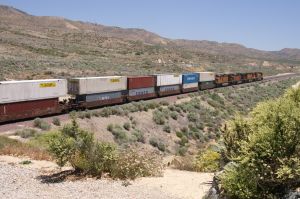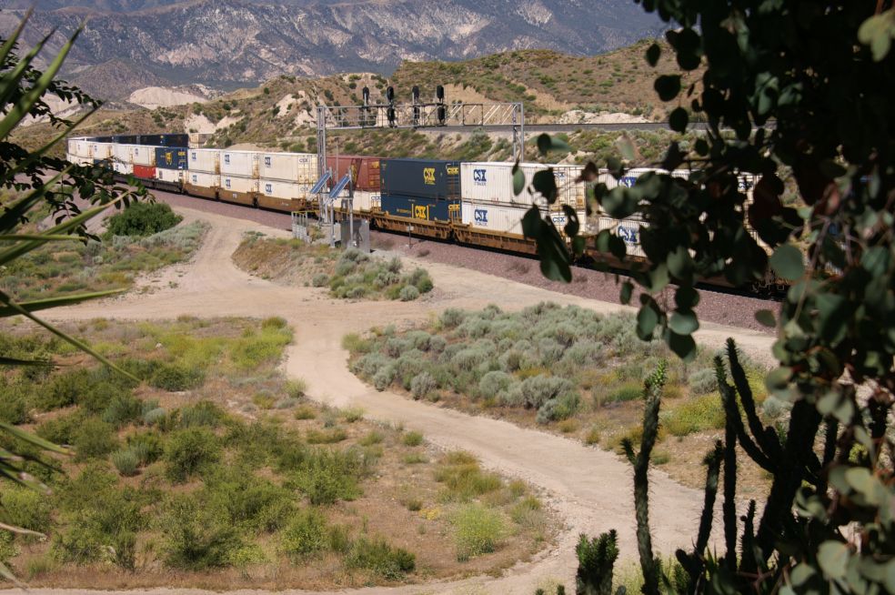 | While the 2 Swiss boys were flying back to the Apple Valley Airport and driving by car back to Hill 582, our friends finally got some trains passing Hill 582. During the flight over the Pass between 08.15 and 09.20 h from Hesperia to Blue Cut and back we did not have a single train. If we would have been later there would be more traffic. Anyway, Gary and Keith were able to catch the delayed WB Amtrak South West Chief and a BNSF EB Double Stack Train. | ||