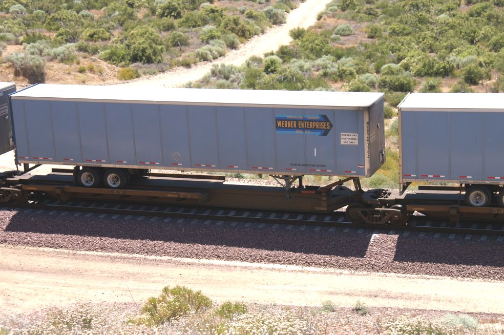| long string of TOFC's - 5251 | Werner and a Werner Ent. Trailer - 8086 KS 163 | no question, WM is happy to see WE trailers - 5252 |
