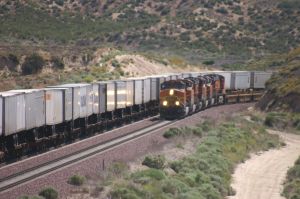 | BNSF EB Ethanol train - 4166 | lead unit BNSF 7603 = ES44DC, built 2007 - 4167 | BNSF 5261 = GE C44-9W, built 2001 - 4168 |