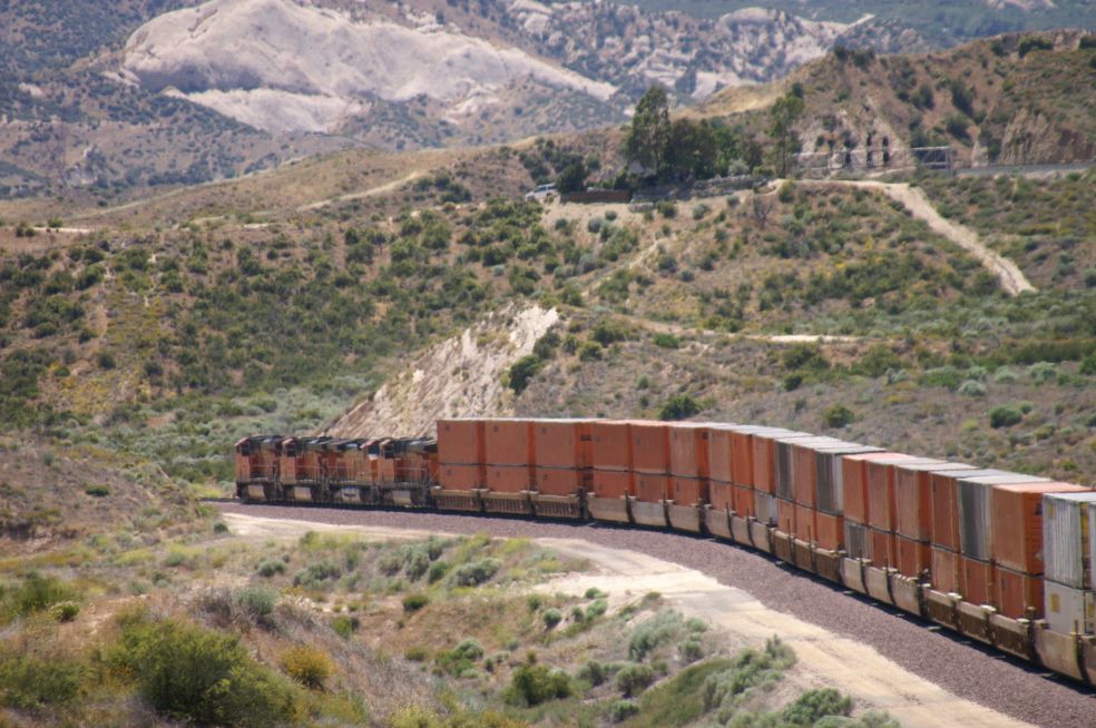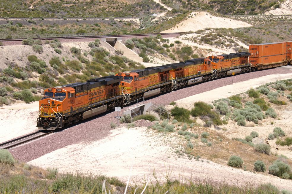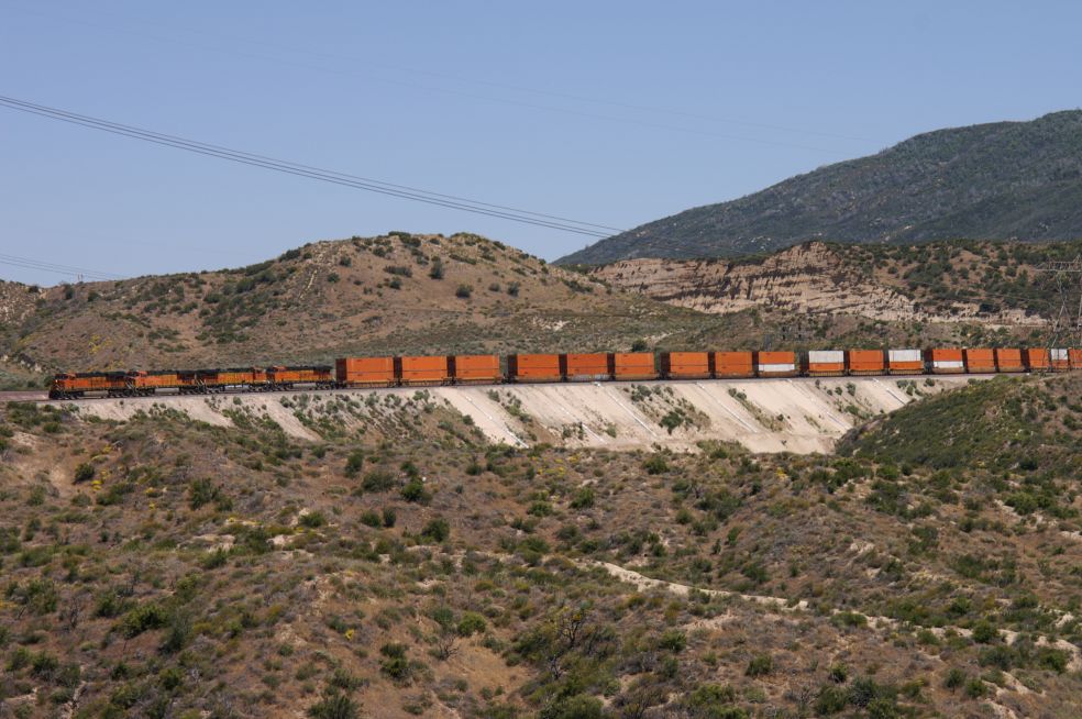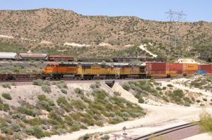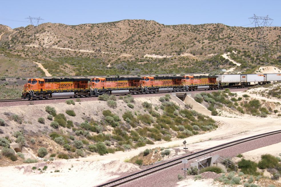 | EB intermodal heading for Barstow - 4232 | Triple track will end at Lugo - 4233 | BNSF 7403 = GE ES44DC - 4234 |