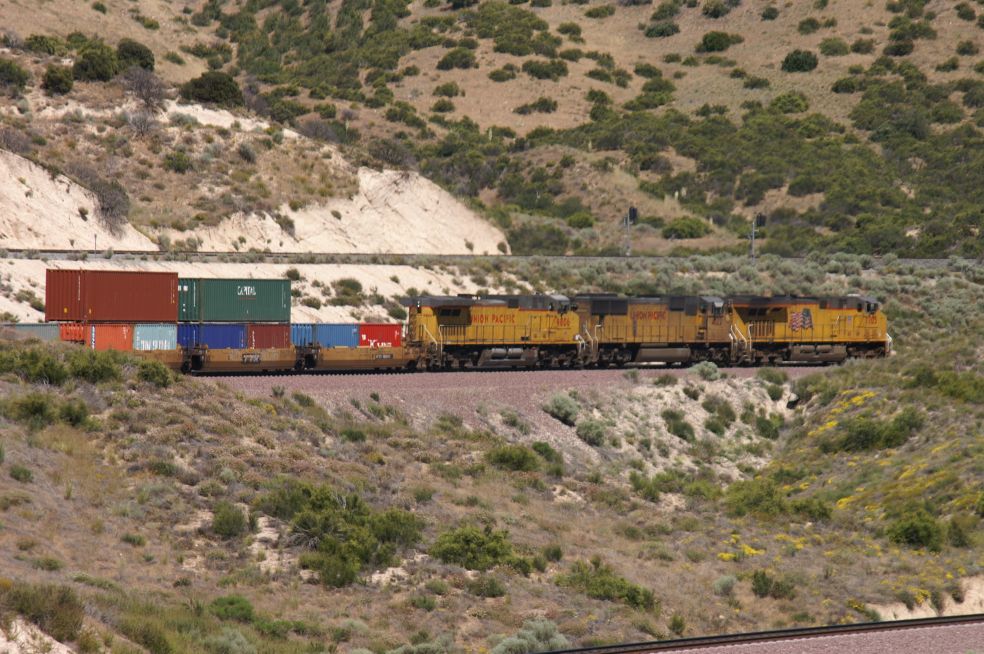 | UP SB on UPT cutoff at Hiland - 2171 | UP mixed freight going downhill - 2172 | mid train helpers - 2173 |
