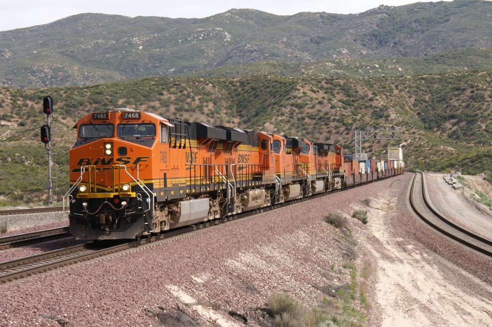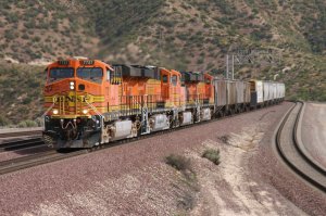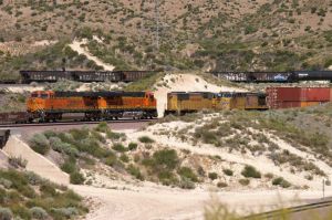 | BNSF 7768 = GE ES44DC, built 2005 - 2521 | empty DBS cars of train 3 are above train 4 - 2522 | 2nd unit # 5265 = C44-9W, built 2001 - 2523 |