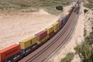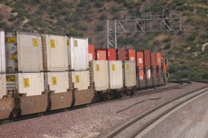 | Christa is also active in taking photos - 6608 MM | between the containers is a BNSF loco EB - 2506 | UP DPU's helping the UP DBS EB train 1 - 6609 MM |