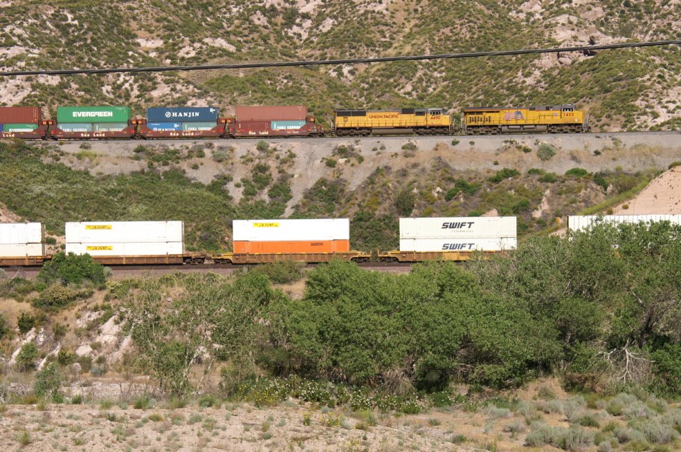 | After the BNSF WB passed, we moved a little bit further uphill and a UP WB was coming down on BNSF tracks. Our UP intermodal is still going uphill on UPT. | ||