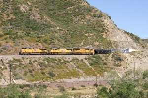 | UP NB on UPT = train 1 - 3010 | UP 7455 = GE C45ACCTE built 2009 - 3011 | intermodal on Colton/Palmdale cutoff - 3012 |