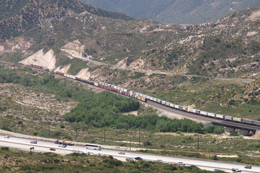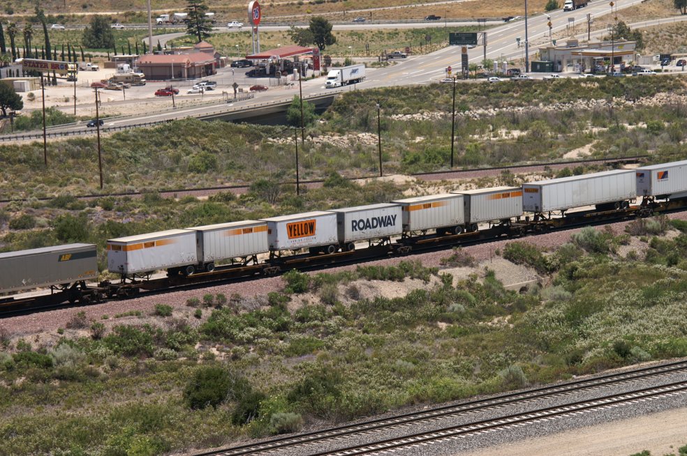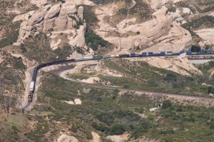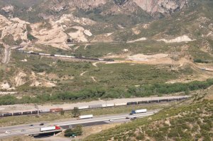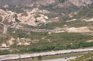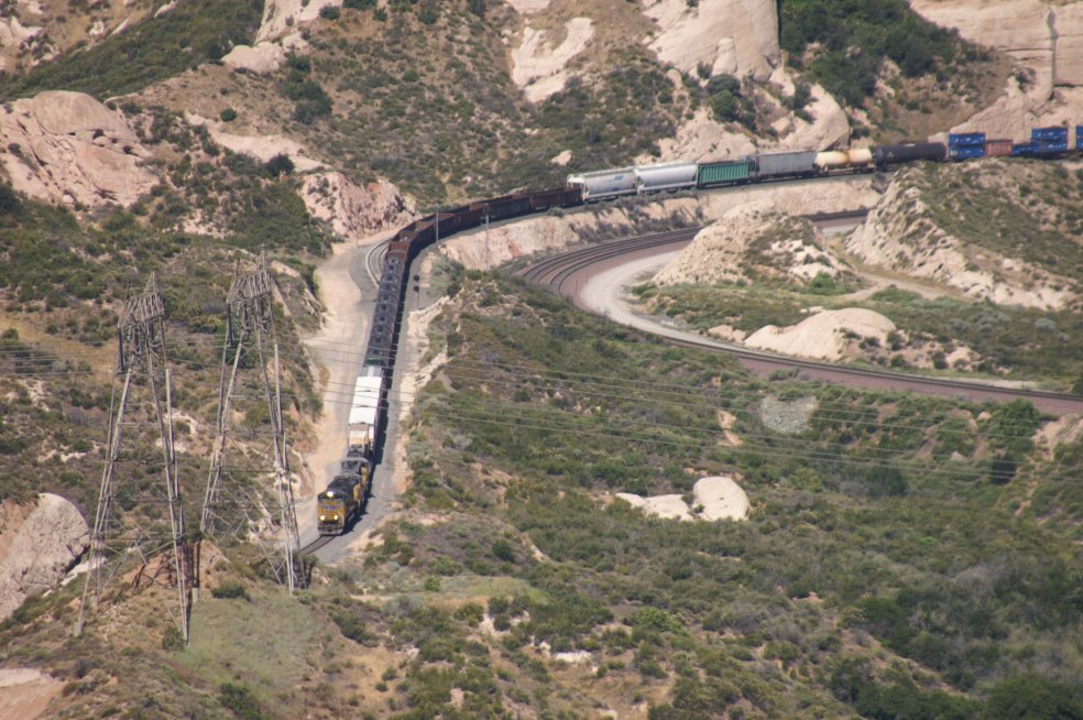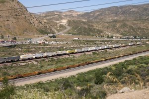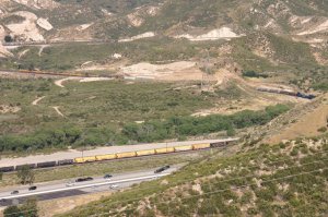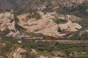 there is a Werner truck appearing ! ! (249 photos) Overlook 1: I wanted to go to a higher elevation but there was already a UP SB train coming down from Sullivans Curve and therefore, I had to stop as soon as I was going uphill on the dirt road coming off Cleghorn Exit (I-15) actually from Cajon Blvd. |