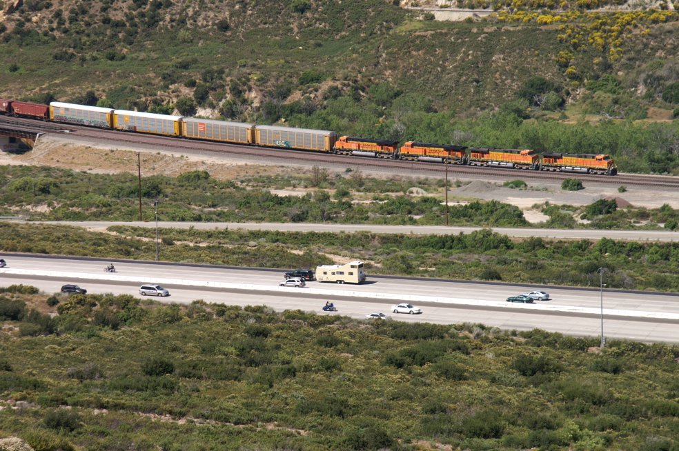 | in the distance we can see train 5 - 1669 | meeting of BNSF WB and UP EB (train 5) - 1670 | - 1671 |