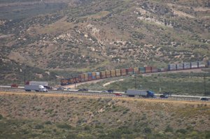 | While waiting for the next train (train 9), there is always action on Interstate 15 with interesting trucks and what else? a Werner Truck or 2 or 3 ! | ||