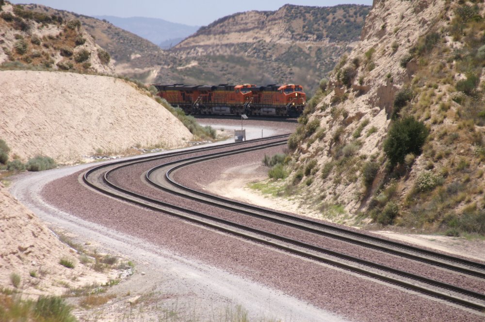 | When I arrived at the Mormon Rocks / Pine Lodge area, there was already a BNSF EB DBS Trains going uphill and I was able to take 8 photos. | |||