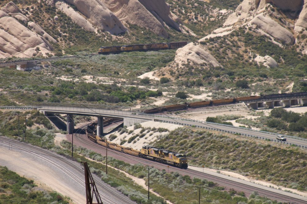 | Train1 leaving Alray - 40593 | Train 2 goes under I-15 - 40595 | Train 2 continues to Steins Hill - 40598 |