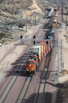| EOT 1: BNSF WB DPU's - 185 | Train 2: BNSF WB DBS - 186 | coming from Victorville Narrows - 187 |