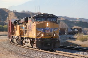 | Train 4: UP EB Auto Carrier - 200 | passing under the Flyover - 201 | Train 5: BNSF EB w/Joshua Tree - 202 |