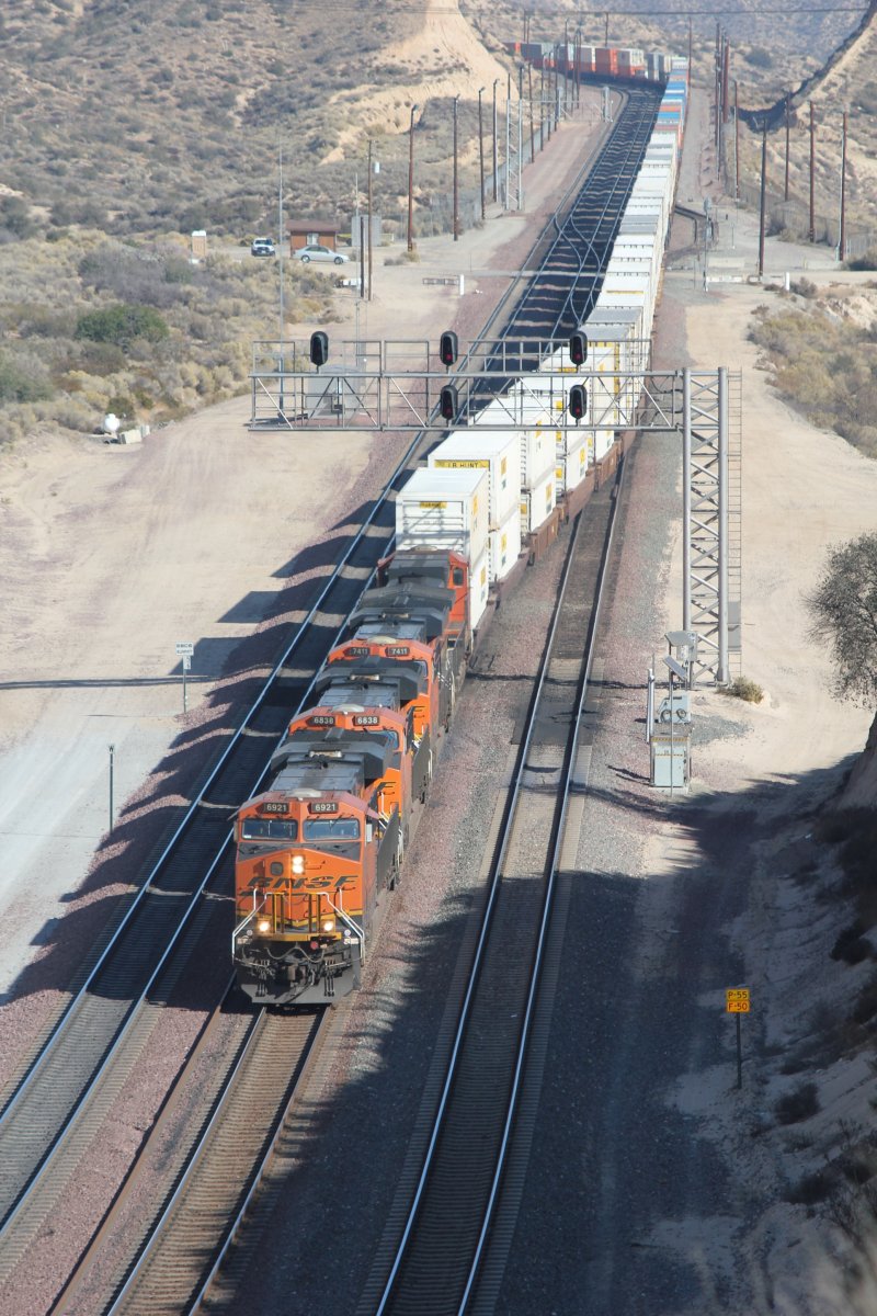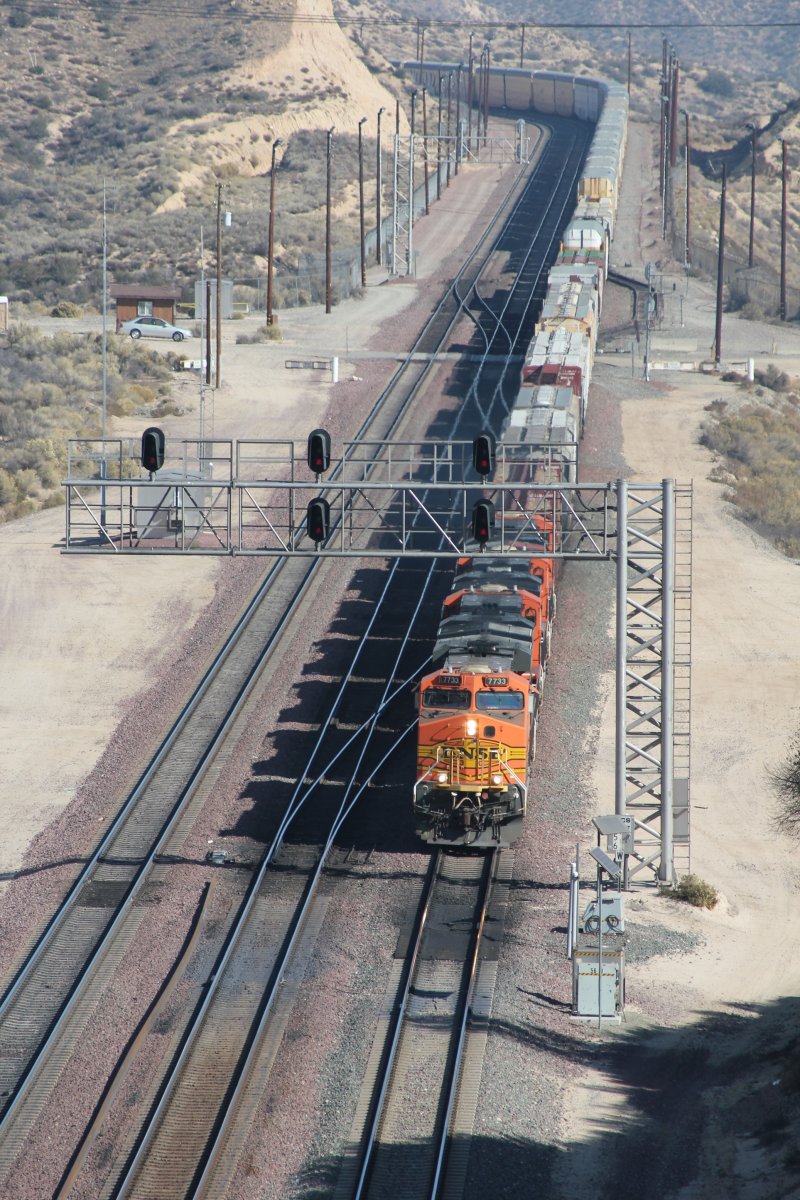 date, number or railroad): Frost/Flyover, Lugo, Summit, Hill 582 Area plus bonus photos (Mojave Desert) Abbreviations found on this page: EB = East Bound, NB = North Bound, SB = South Bound, WB = West Bound, MP = Mile Post, MT-1 = BNSF Main Track 1, MT-2 = BNSF Main Track 2, MT-3 = BNSF Main Track 3, UPT = UP Track (Colton-Palmdale Cutoff), DPU = Distributed Power Unit (Helpers), EOT = End of Train, DBS = Double Stack Train, TOFC = Trailer on Flat Car (Piggy Back), |
