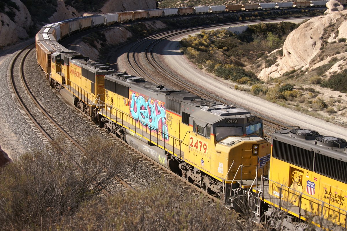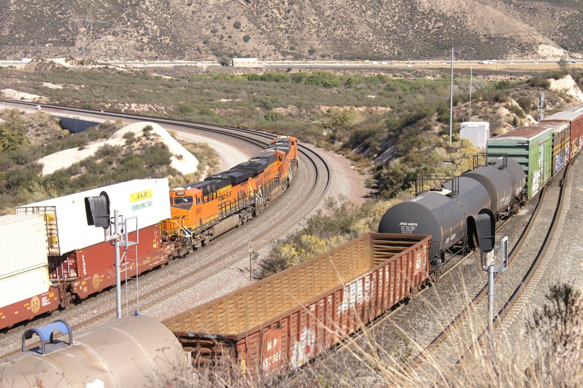 Bound, WB = West Bound, MP = Mile Post, MT-1 = BNSF Main Track 1, MT-2 = BNSF Main Track 2, MT-3 = BNSF Main Track 3, UPT = UP Track (Colton-Palmdale Cutoff), DPU = Distributed Power Unit (Helpers), EOT = End of Train, DBS = Double Stack Train, TOFC = Trailer on Flat Car (Piggy Back), |