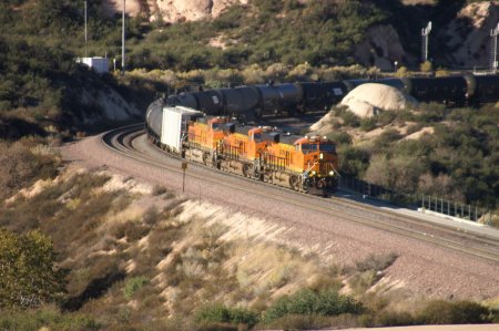 | I cannot resist: a Werner Enterprises truck on I-15 WB - 12199 | Train 6 BNSF EB coming uphill - 12200 |