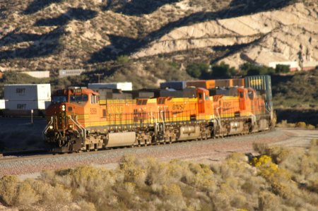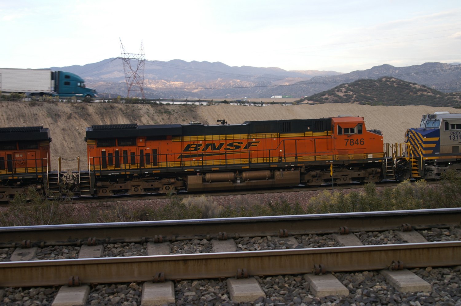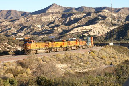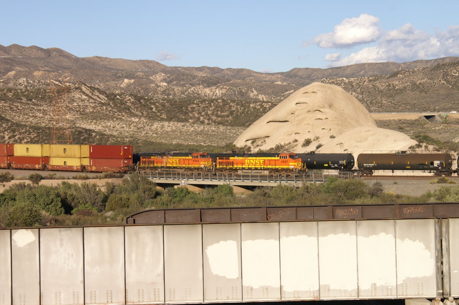 | BNSF EB going uphill on BNSF MT-1 - 11843 | behind is one of the small Mormon Rocks hills - 11844 |