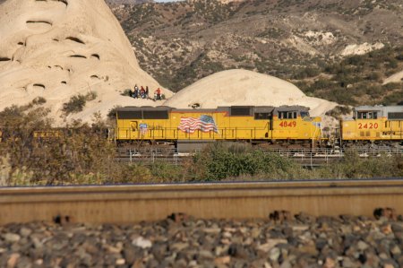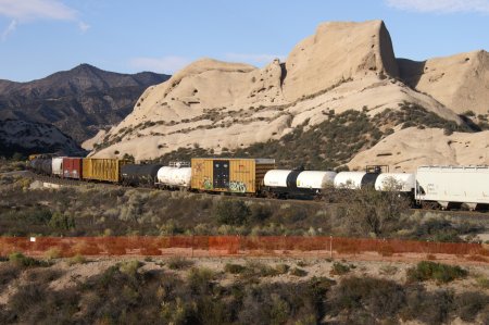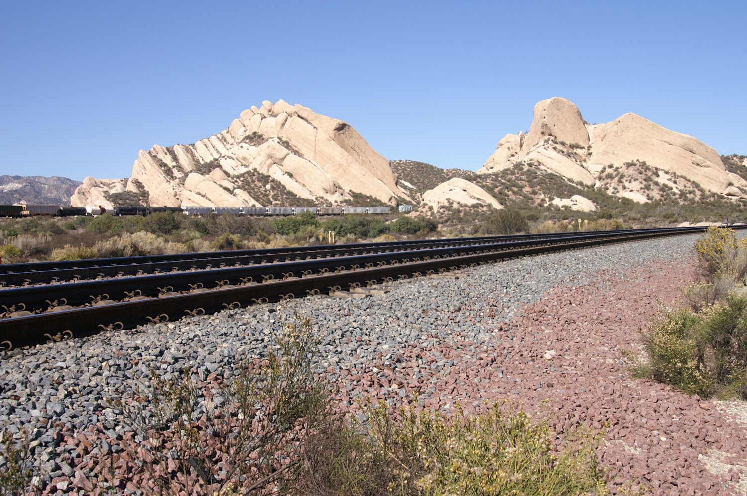 | Highway 138 is running parallel to the Mormon Rocks - 4755 | here we can see the UP Track (Palmdale Cutoff) - 4757 |