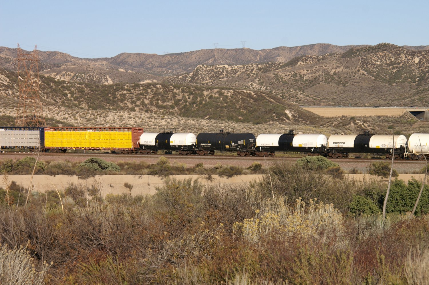 Bound, WB = West Bound, MP = Mile Post, MT-1 = BNSF Main Track 1, MT-2 = BNSF Main Track 2, MT-3 = BNSF Main Track 3, UPT = UP Track (Colton-Palmdale Cutoff), DPU = Distributed Power Unit (Helpers), EOT = End of Train, DBS = Double Stack Train, TOFC = Trailer on Flat Car (Piggy Back), |