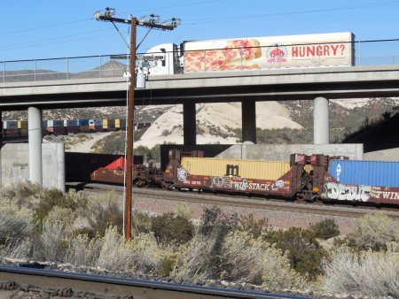 | Train 3 just passing under HWY-138 - 11574 | Train 3 last photo, above: HWY-138 and I-15 intersection - 11575 |
