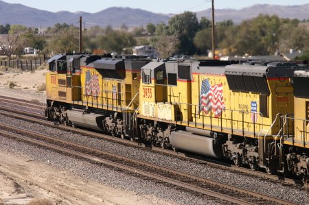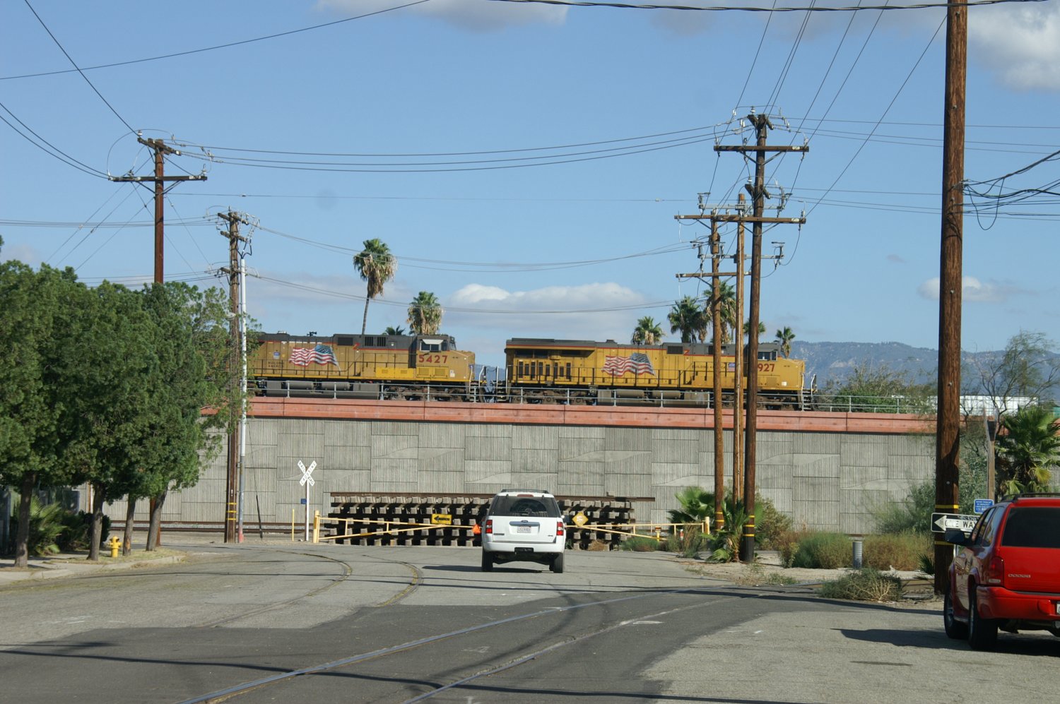 | I was able to catch the UP-Train w/UP 8788 leading unit (I have seen from I-15) after the Barstow Yard while driving Main Street (old Route 66). | |